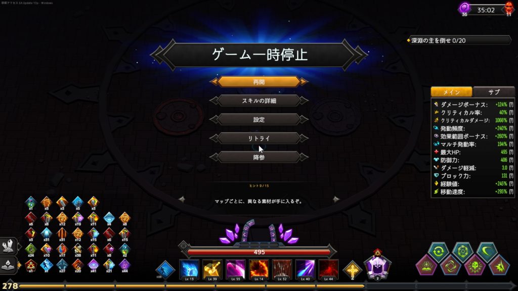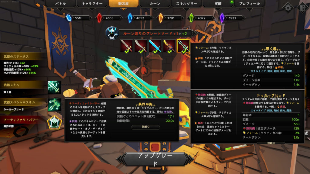 以下、スペルブレードでボスラッシュ11まで進めた時のビルド。