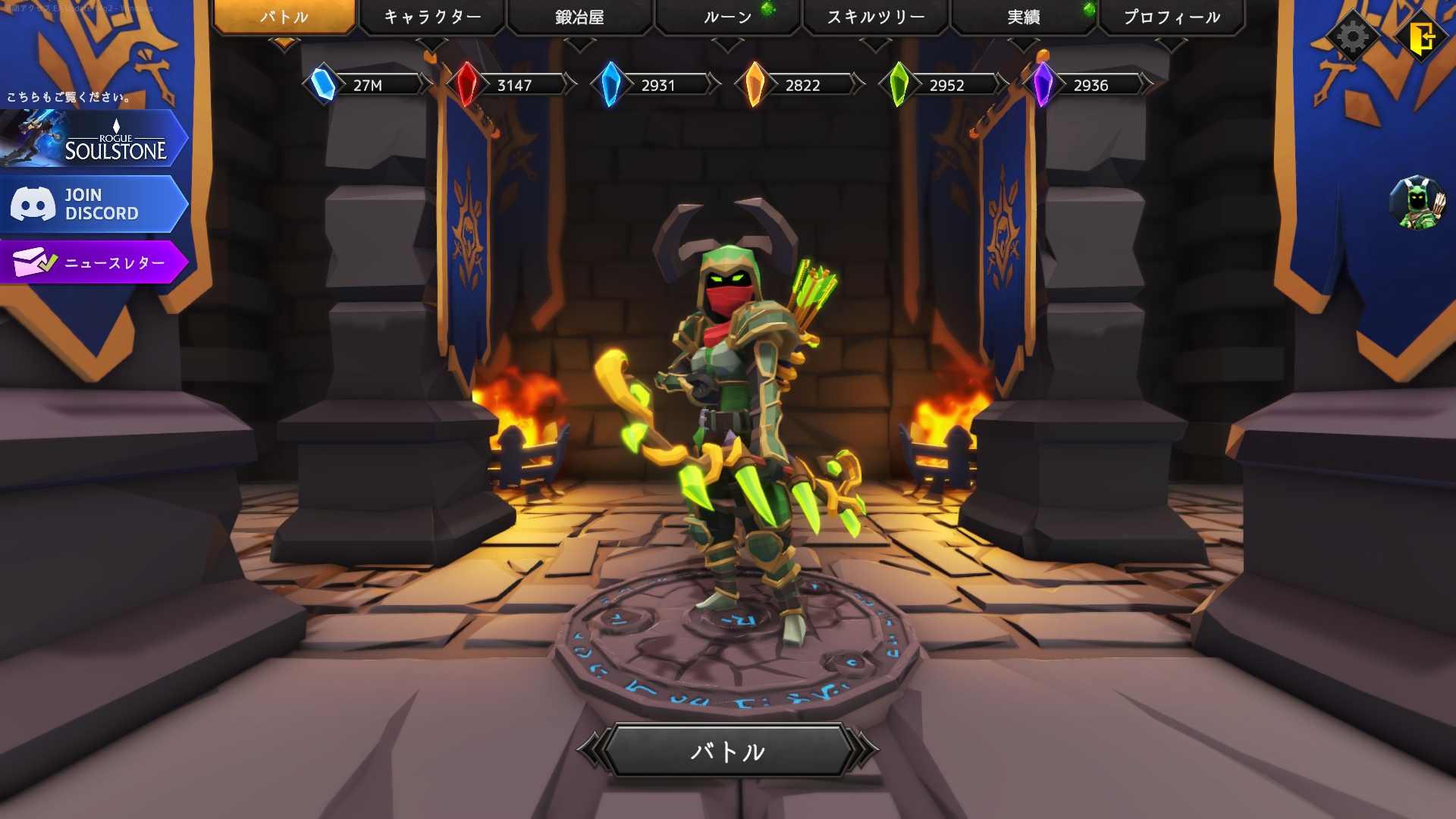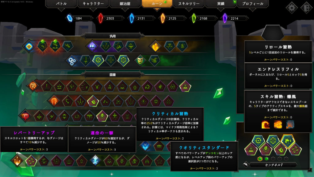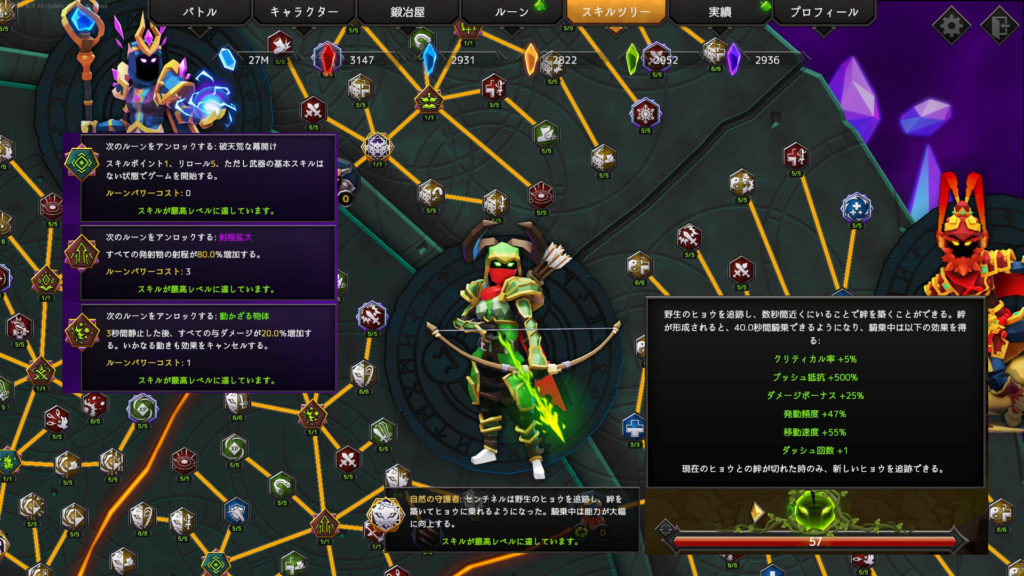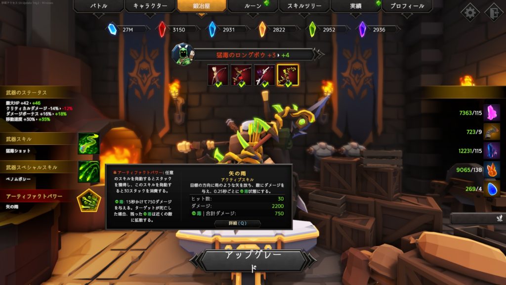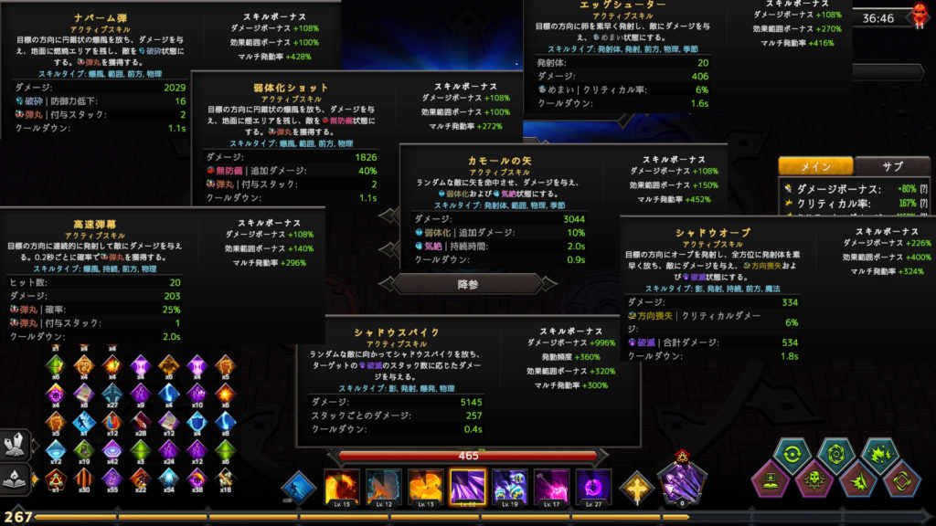 ルーンとスキルはこんな感じで、スキル習熟ではナパーム弾、弱体化ショット、高速弾幕を選択しています。