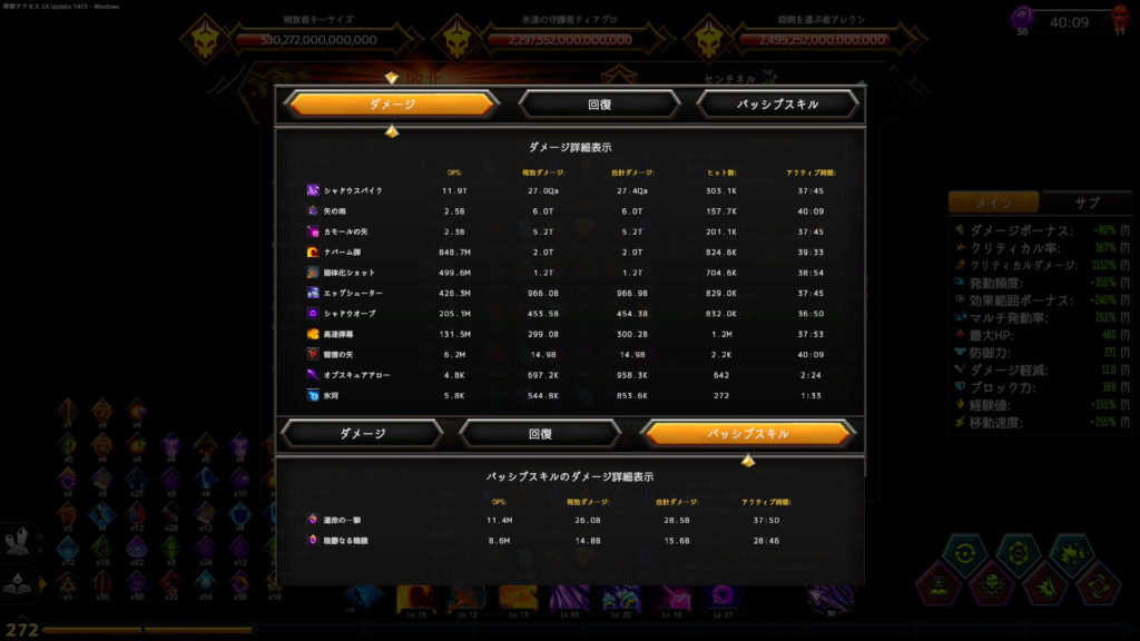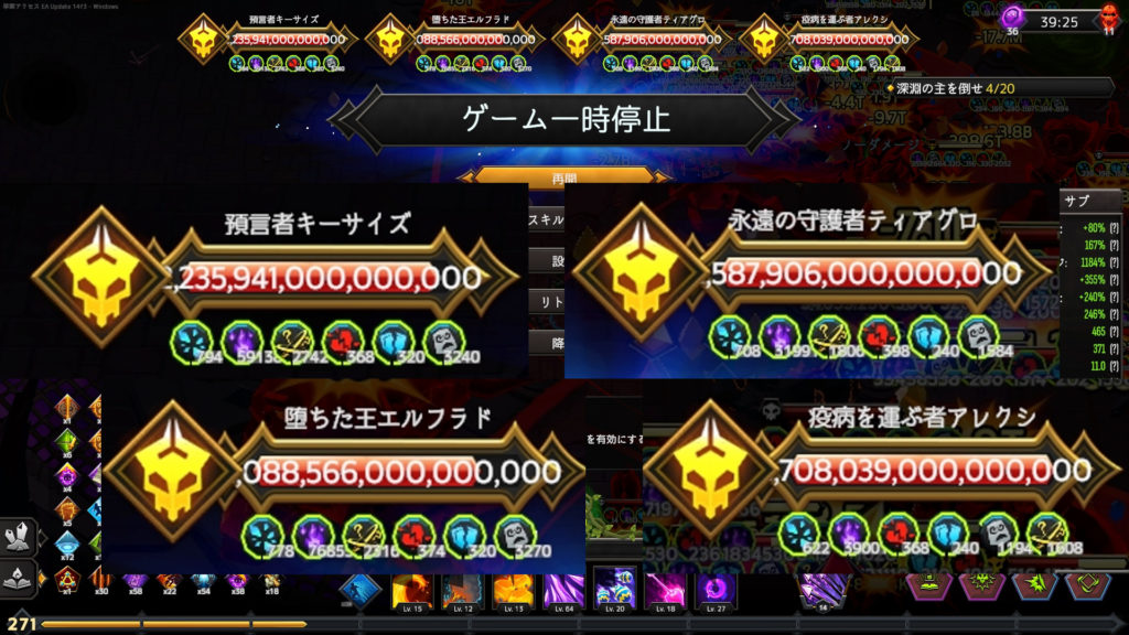 攻撃を集中したボスの破滅のスタックが5万前後、他のデバフも程々に乗っています。