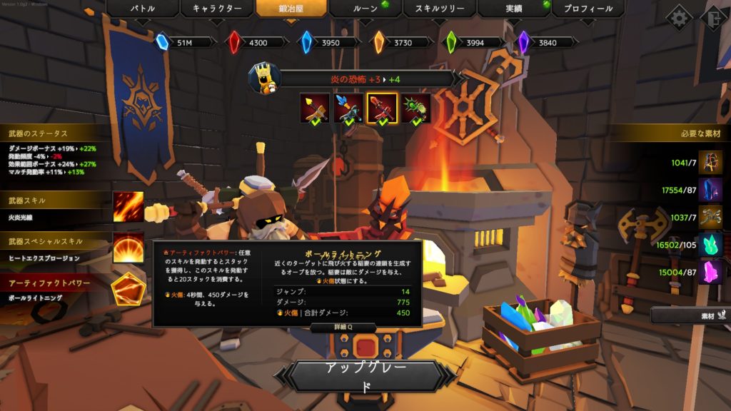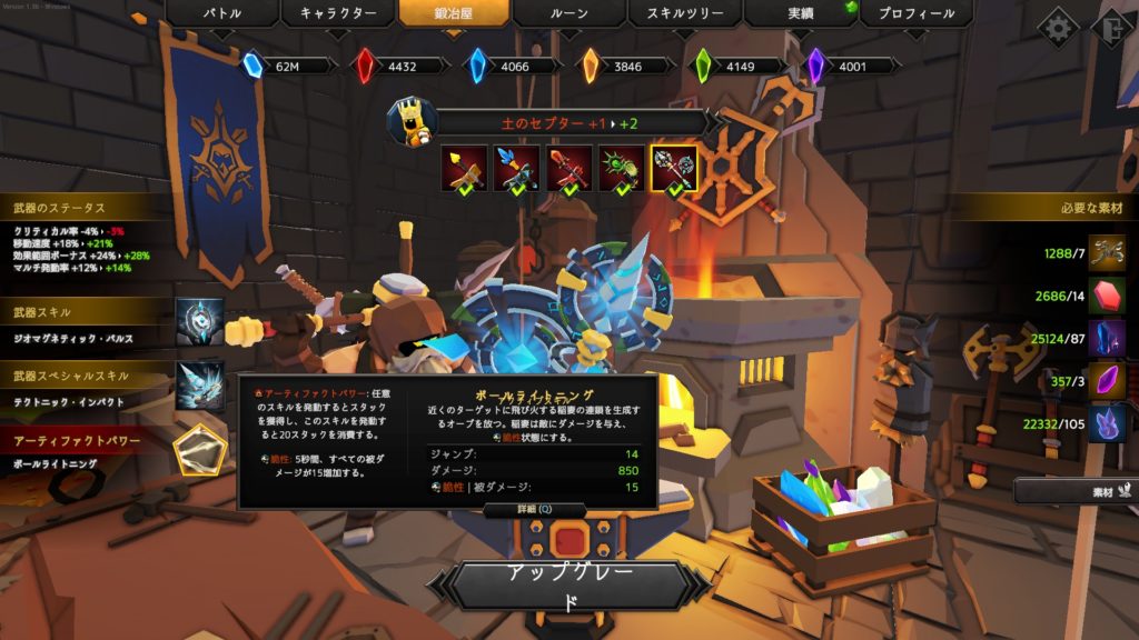 転がる大岩のダメージは効果範囲ボーナスによって強化されていくので、ミドラークUPSの黄金の振動を利用してダメージ増大を狙っていく。
