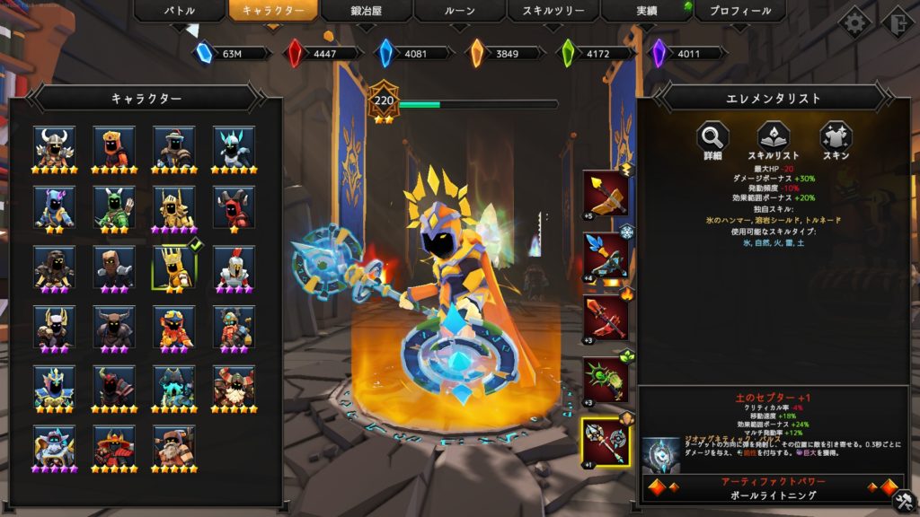 エレメンタリストのアーティファクトパワーボールライトニング。