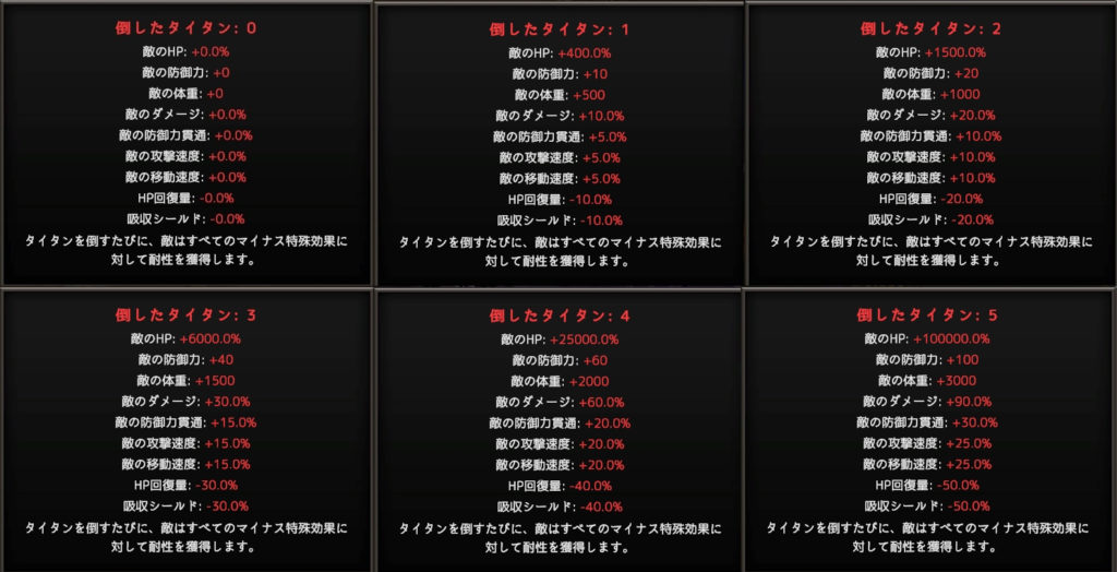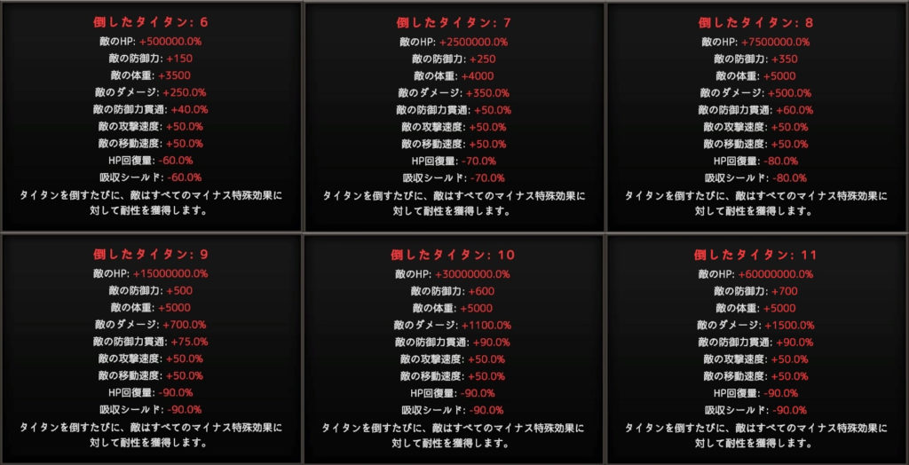 以下のものはタイタン撃破までの状況でのボーナス表示。