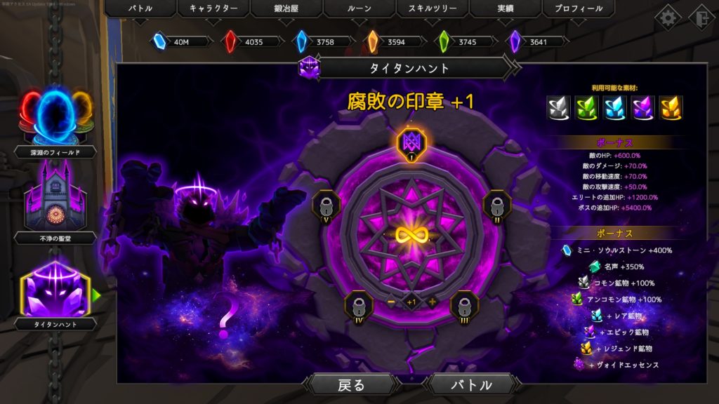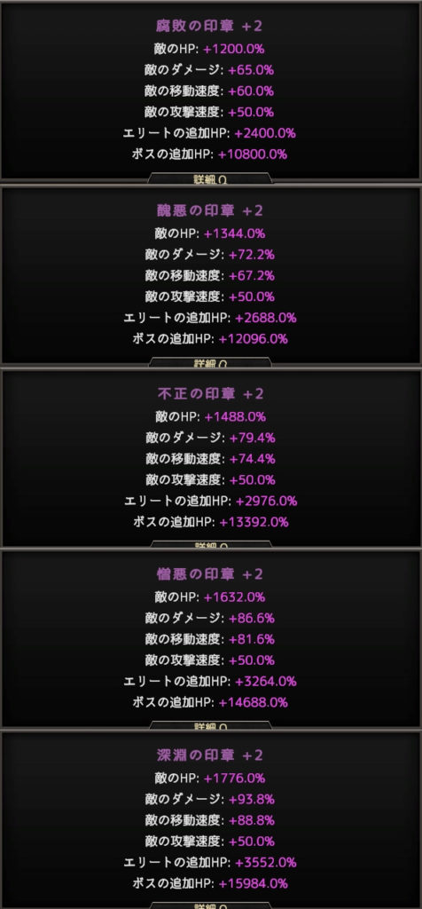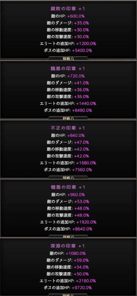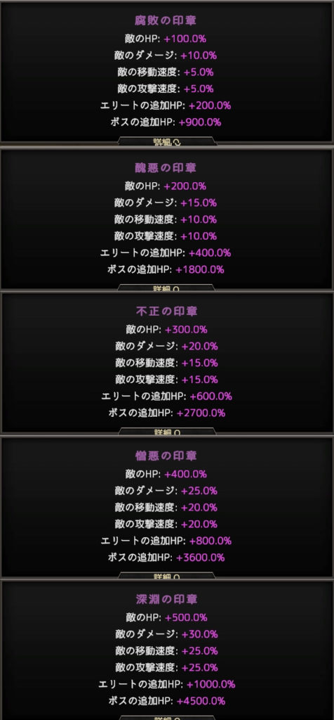 深淵の印章をクリアすると腐敗の印章+1が選択できるようになり、難易度は更に上昇。