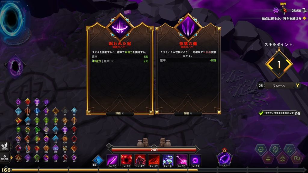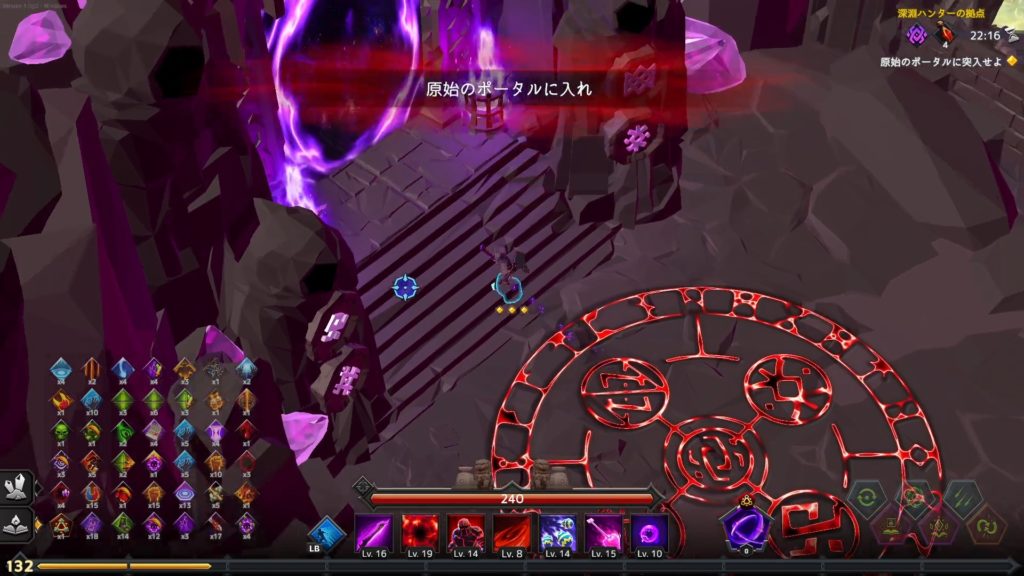 青のポータルが拠点へ、紫のポータルで続けて狩り。