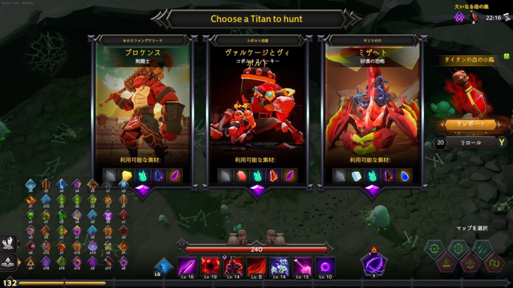 タイタンを4体倒した後に出現するポータルに入るとタイタンの血の小瓶が一杯になり、次のタイタン選択画面の右にある血の小瓶アートの下部分選択でテレポートを選択できるように。